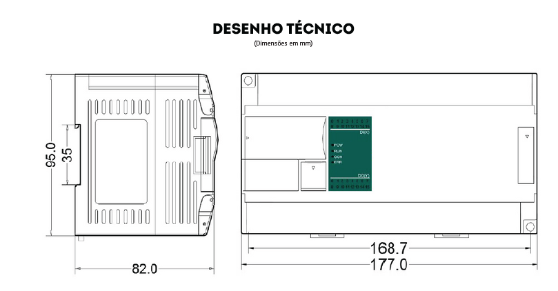 | Tensão de Saída (Saídas e Extensões) | 24 V, -15% ~ +15%, máx. 500 mA | Corrente máxima de Entrada | 10 mA |