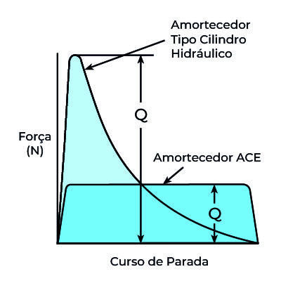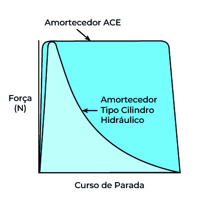 Vantagem: Ao instalar um amortecedor ACE, teremos um produto com grande absorção de energia, resultando em uma excelente desaceleração linear.
