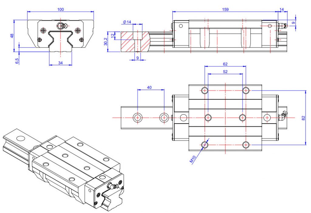 | W1 | H | W | Dinâmica (Kgf) | Estática (Kgf) | MP (Kgf.m) | MY (Kgf.m) | MR (Kgf.m) | Carro (Kg) | Guia (Kg/m) | |