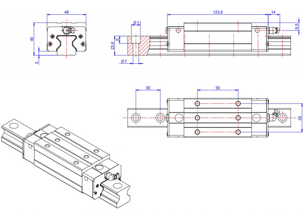 | W1 | H | W | Dinâmica (Kgf) | Estática (Kgf) | MP (Kgf.m) | MY (Kgf.m) | MR (Kgf.m) | Carro (Kg) | Guia (Kg/m) | |