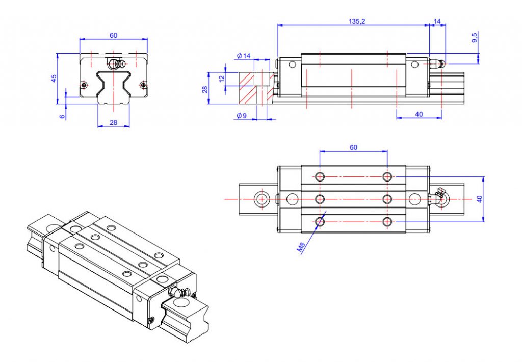 W1 H W Dinâmica (Kgf) Estática (Kgf) MP    (Kgf.m) MY    (Kgf.m) MR    (Kgf.m) Carro (Kg) Guia (Kg/m)