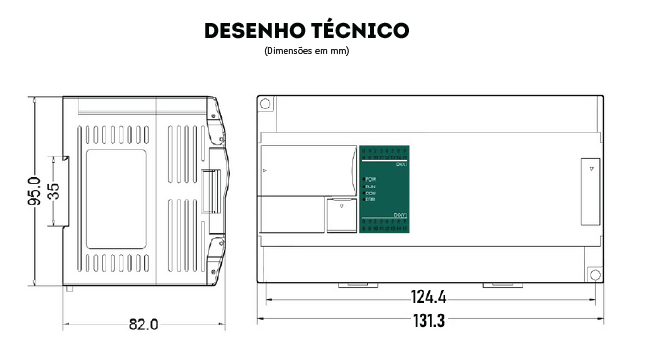| Tensão de Saída (Saídas e Extensões) | 24 V, -15% ~ +15%, máx. 500 mA | Corrente máxima de Entrada | 10 mA |