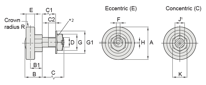Os Rolamentos de trilho estreito complementam as outras linhas de rolamentos GV3. Estão disponíveis na configuração de fixação com furo passante, em um único comprimento de eixo, tanto na versão fixa do Tipo Concêntrico (C) quanto na versão ajustável do Tipo Excêntrico (E). Os rolos são lubrificados internamente para toda a vida útil; contudo, recomenda-se a lubrificação da superfície de contato.